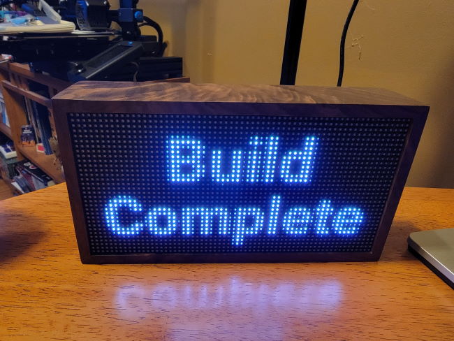 As you can see, there isn't too much to it. I specify a template (which for me was just a black rectangle using the proper size for Tidbyt) and then the text I want to use. I send this to Bannerbear and the result is a JSON packet that includes the URL to the generated image. Now I want to be clear, Bannerbear has a heck of a lot of options, I just used the quickest and simplest thing I could to generate my image, but it's definitely a service to check out. Here's what that image looks like when done: