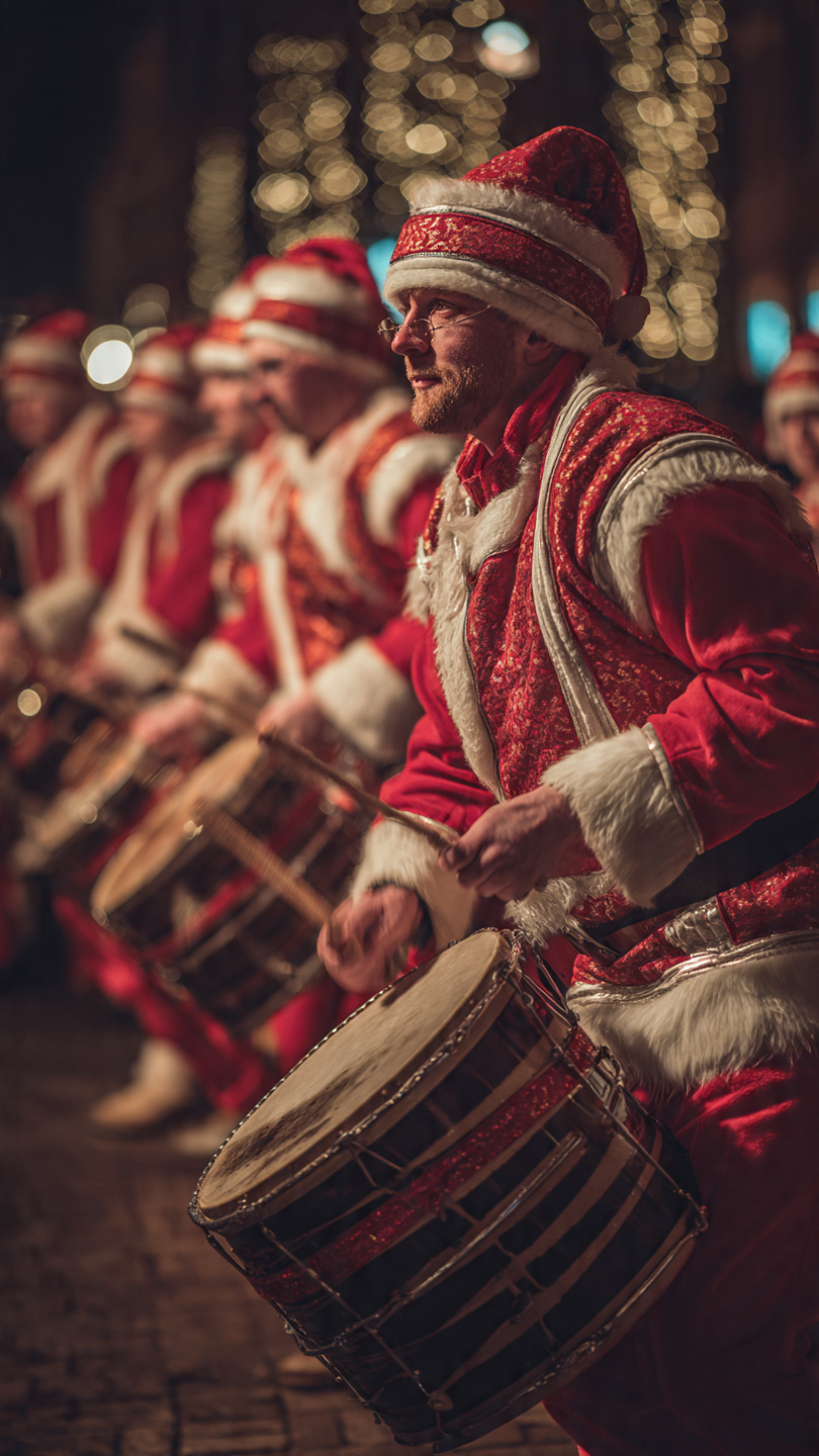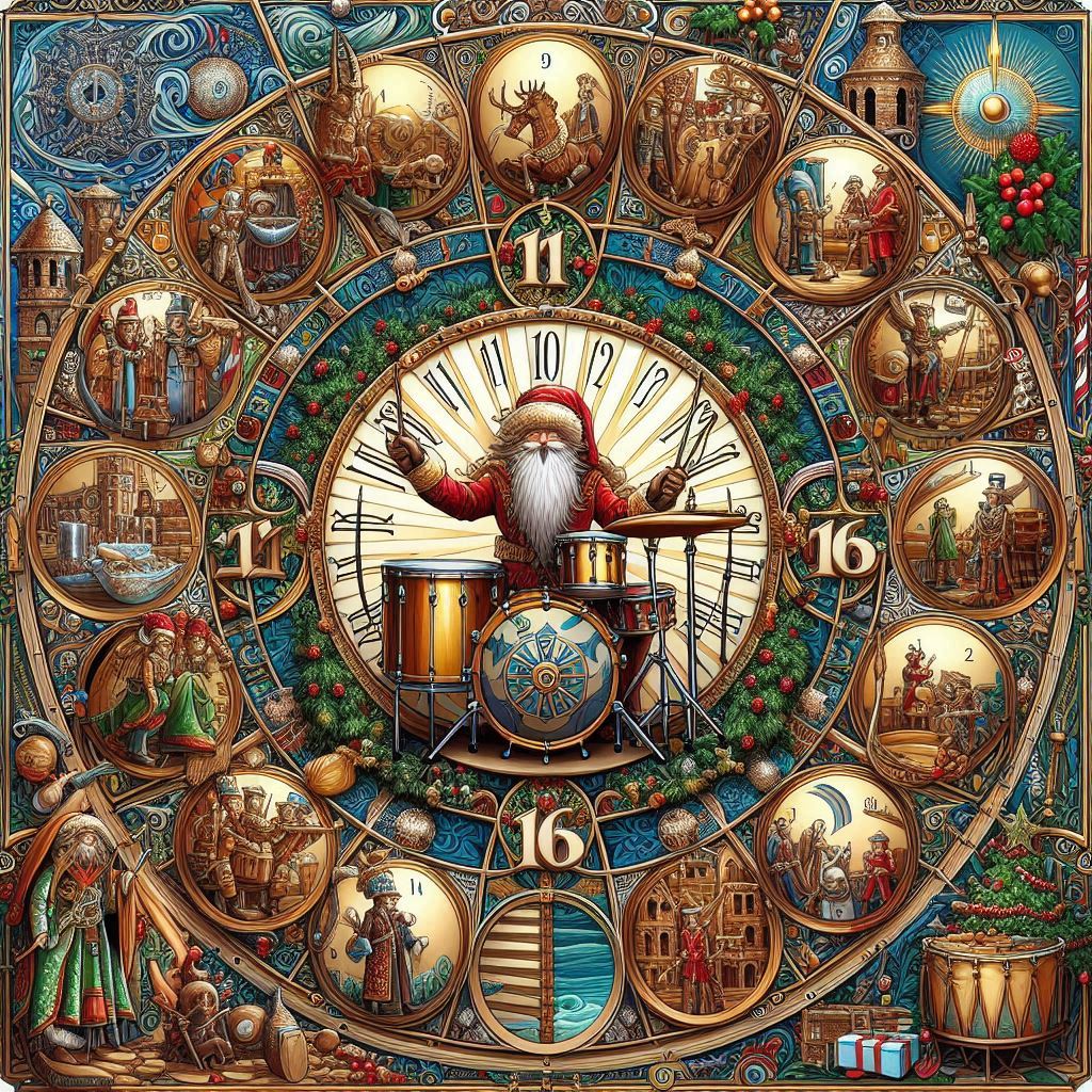 You will generate an image based on one day from the Twelve Days of Christmas song: twelve drummers drumming